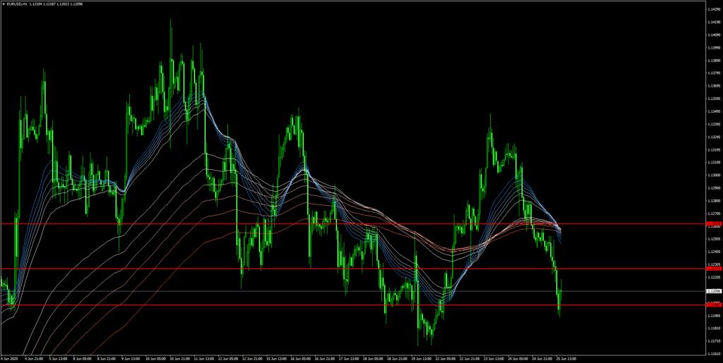 『GMMAトレード手法』を使った実際のトレードについて解説しています。尚、私は1時間足でこのトレード手法を使っています。