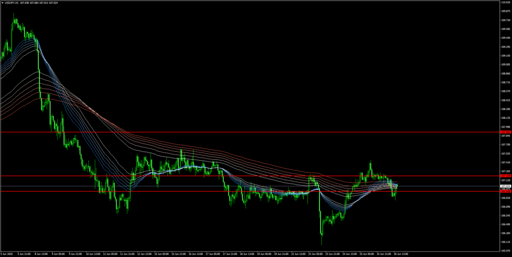 ドル円相場未だ動かず:1時間足GMMAトレード